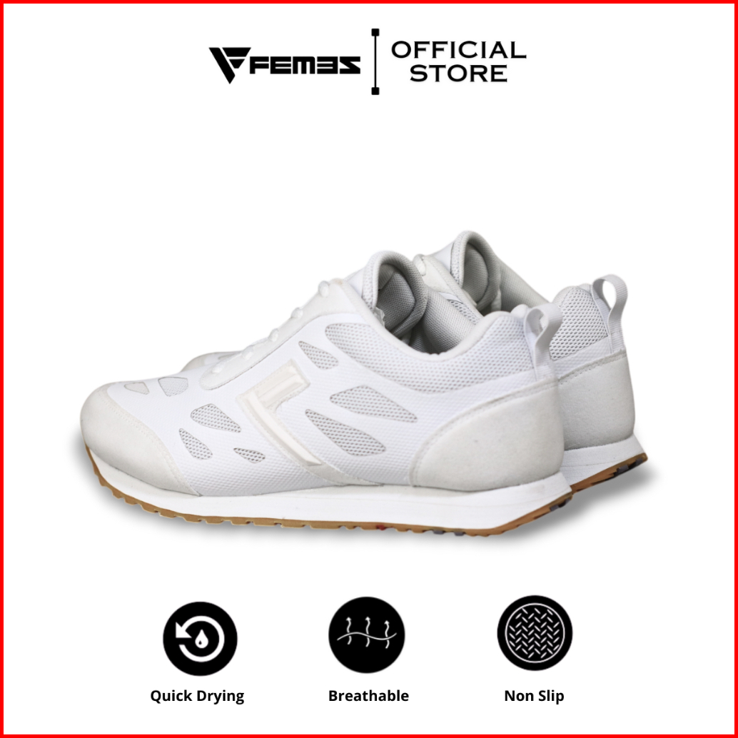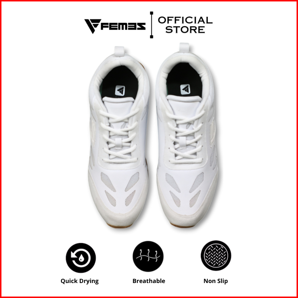 Femez Lite Berlin Sepatu Sneakers Pria 38-48 Full White Putih Polos Bigsize Sport Casual Joging