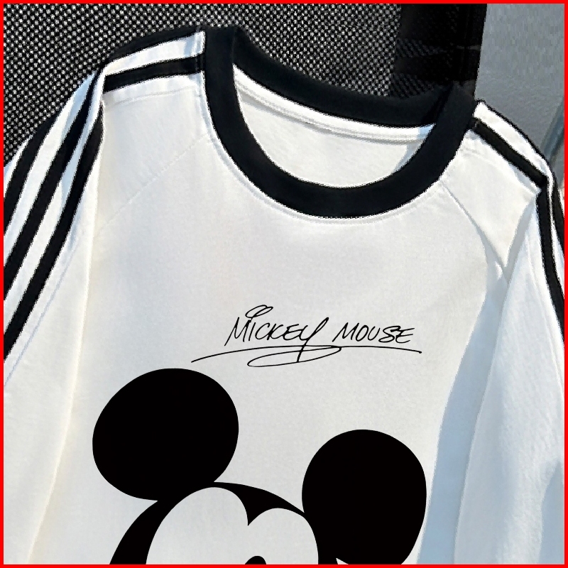 Kaos Pria New Arrival 2025 Kaos Sablon Mickey Mouse Disney Atasan Casual Lengan Raglan 3 Stripes
