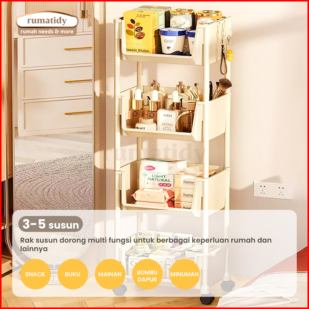 Rumatidy - Rak Buku Susun Anak Troli Serbaguna Rak Toilet Dapur Rak Dengan Roda Kuat Awet Estetik