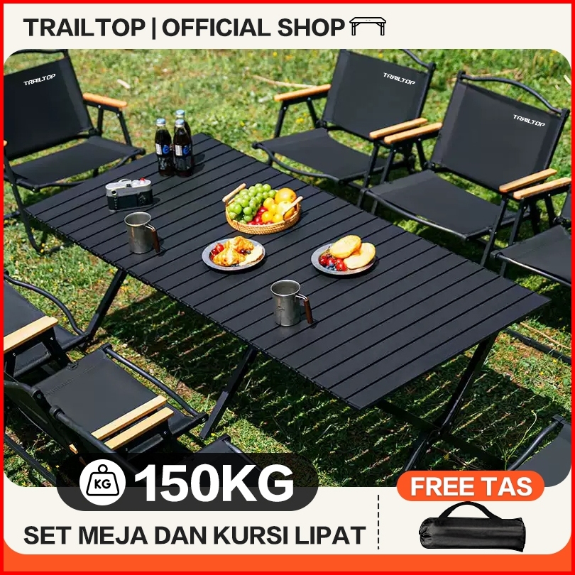 Trailtop Meja Lipat Panjang Outdoor Meja Lipat Camping Meja Telur Gulung Portabel Peralatan Meja
