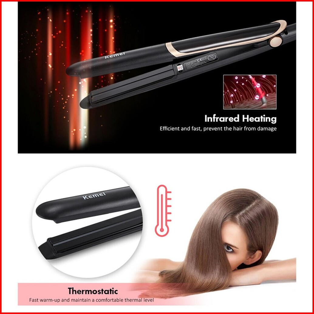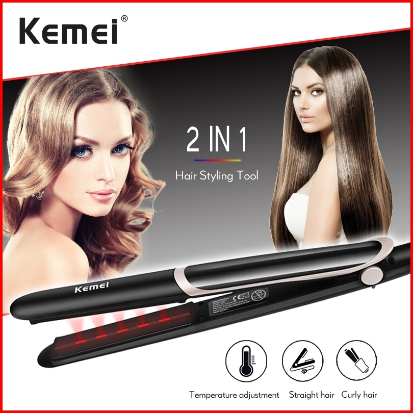 Kemei Km 2219 Infraredy 2in1 Catokkan Mengeriting Dan Meluruskan Rambut Otomatis Kontrol Suhu