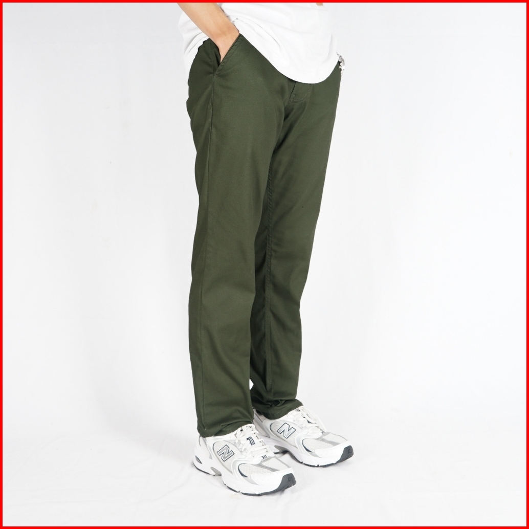 Irish Kelly Long Chino Pants Slim Fit Olive Army - Hijau