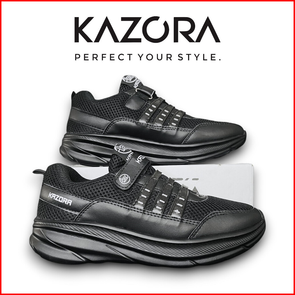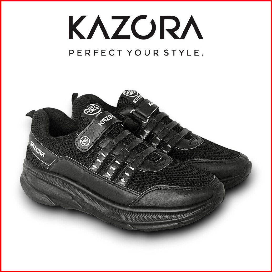 Kazora Pikko Sepatu Sekolah Anak Dan Dewasa Laki Laki Dan Perempuan Perekat Velkro Sepatu Hitam Putih Full Hitam Cewek C