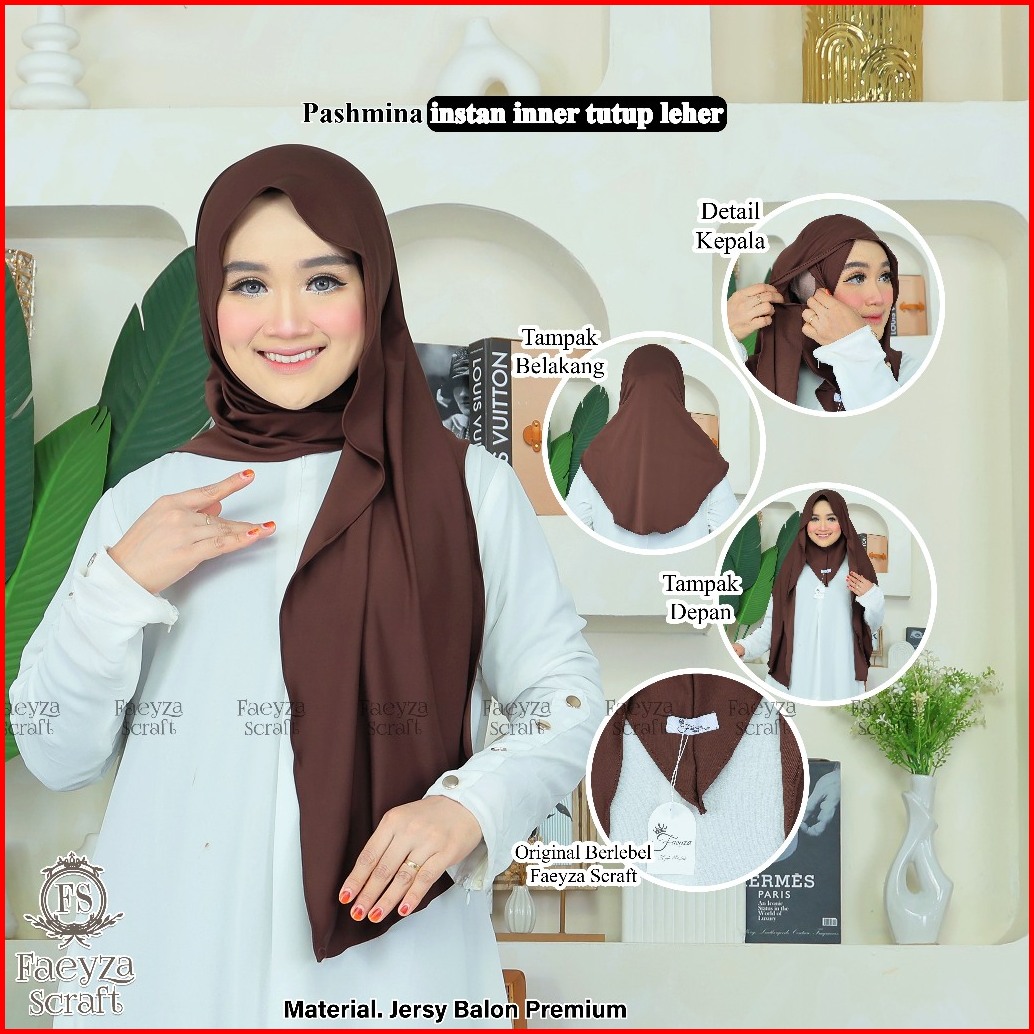 Faeyza Scraft - Pashmina Inner Tutup Leherr Hijab Stylish Material Premium