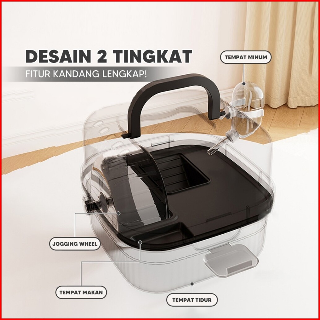 Lazy Pet Kandang Hamster Portable 2 Tingkat F33 Kandang Mini Hamster Transparan Fasilitas Lengkap
