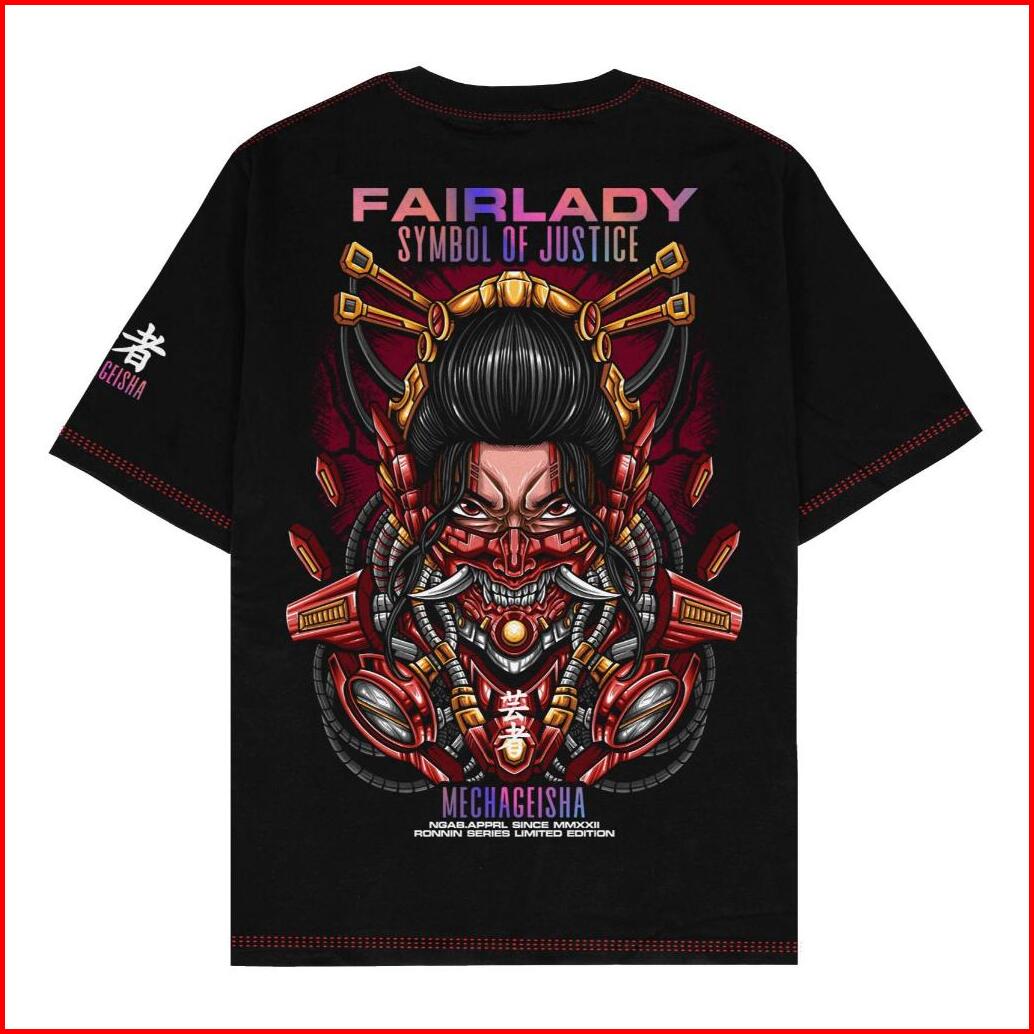 Ngab Kaos Baju Distro Sablon Reflective Rainbow Mechageisha Hitam Nb168 Cotton Combed 24s