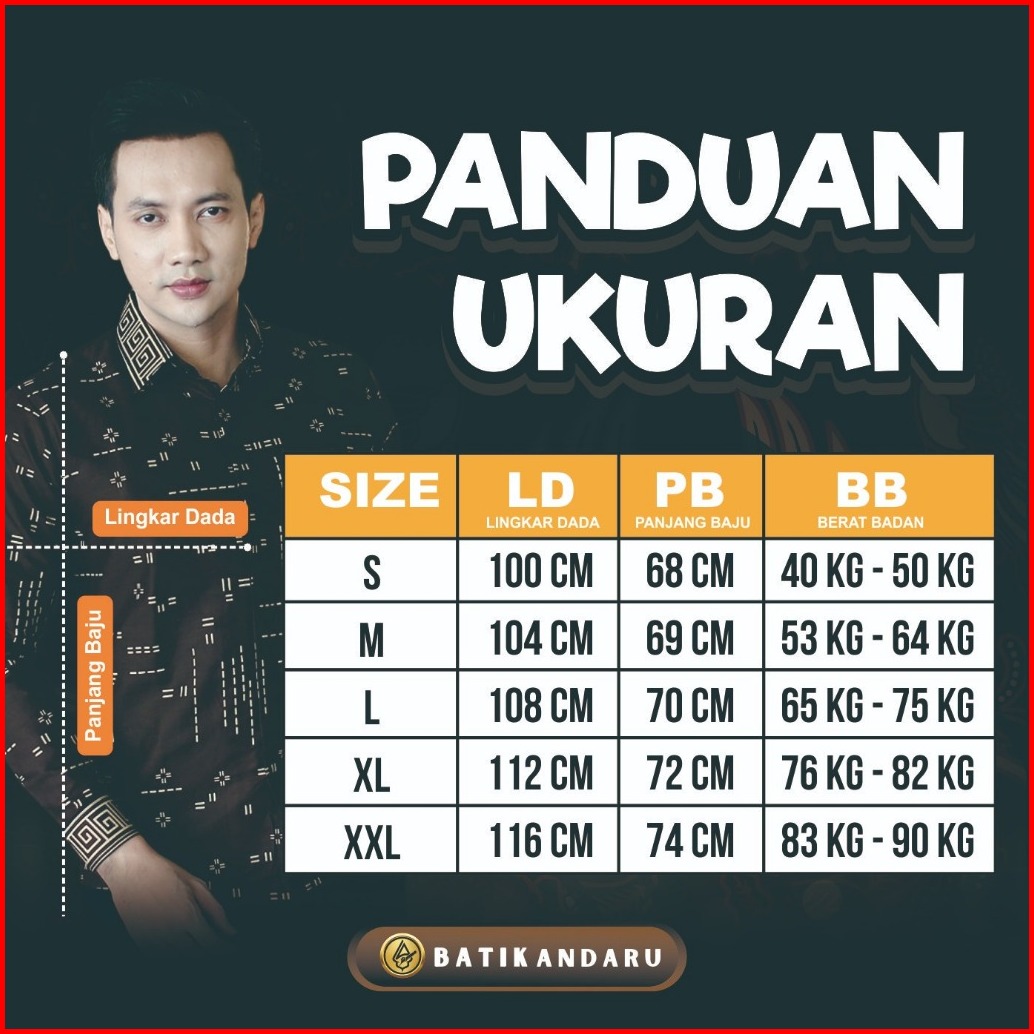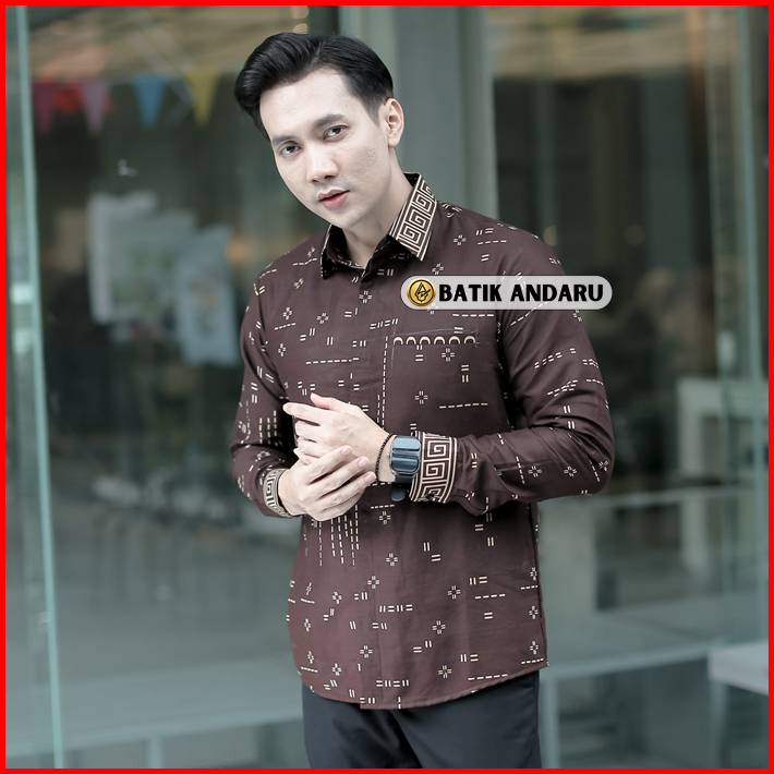 Batik Andaru Motif Mahardika Kemeja Batik Pria Slimfit Lengan Panjang Modern Elegant Simpel Hem Katun Premium Warna Cokl