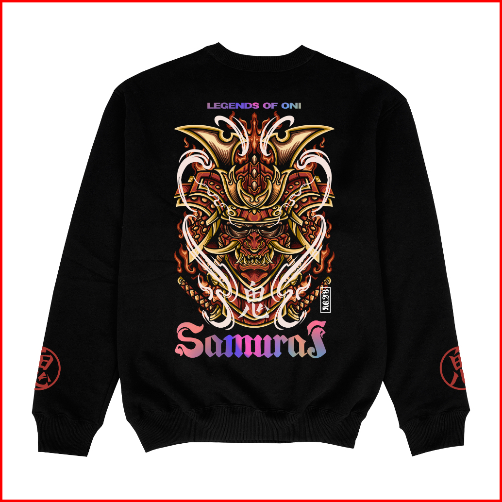 Ngab Crewneck Reflective Rainbow Samurai Legends Of Oni Hitam Crw010 Fleece Tebal Dan Lembut