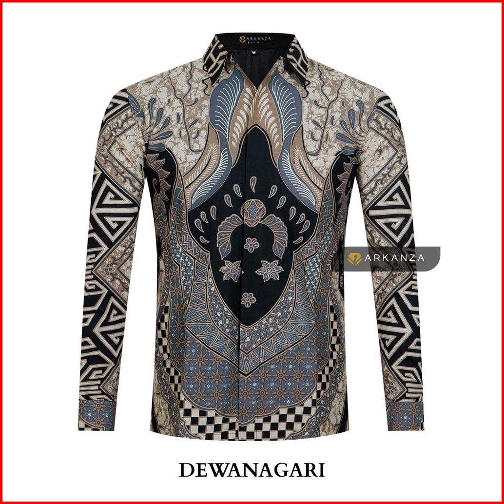 Atasan Kemeja Batik Arkanza Store Motif Dewanagari Lengan Panjang Slim Fit