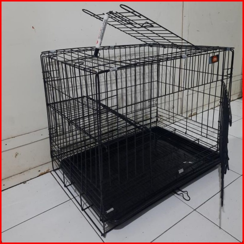 Kandang Kucing Kelinci Anjing Besi Lipat Size L 60x45x55 Cm Pintu Atas Dan Samping