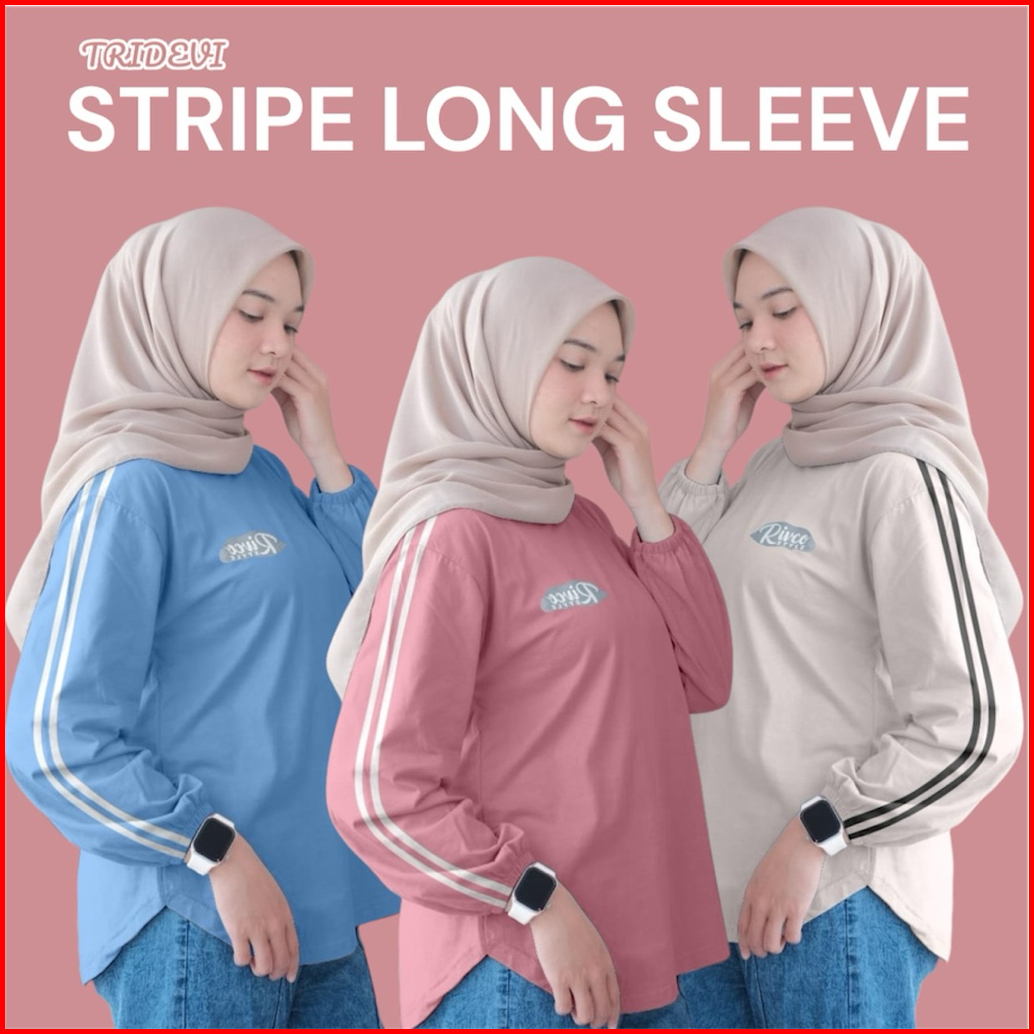 Atasan Stripe Kaos Wanita Premium Lengan Panjang Jumbo Terbaru