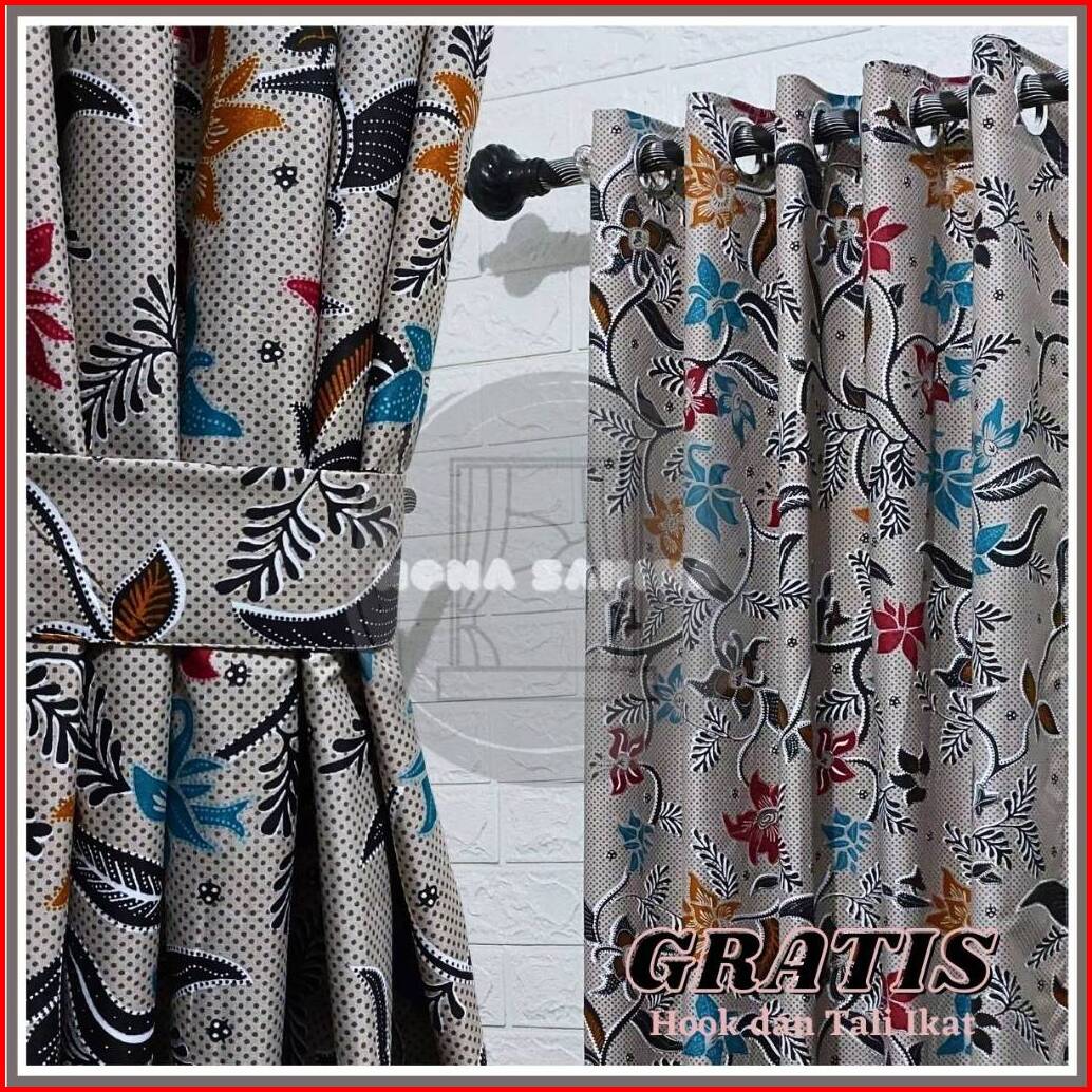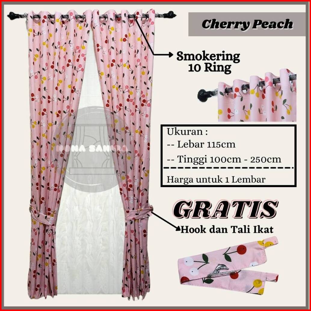 Gorden Jendela Pintu Minimalis Katun Model Smokering Motif Aesthetic Free Hook Dan Tali Ikat