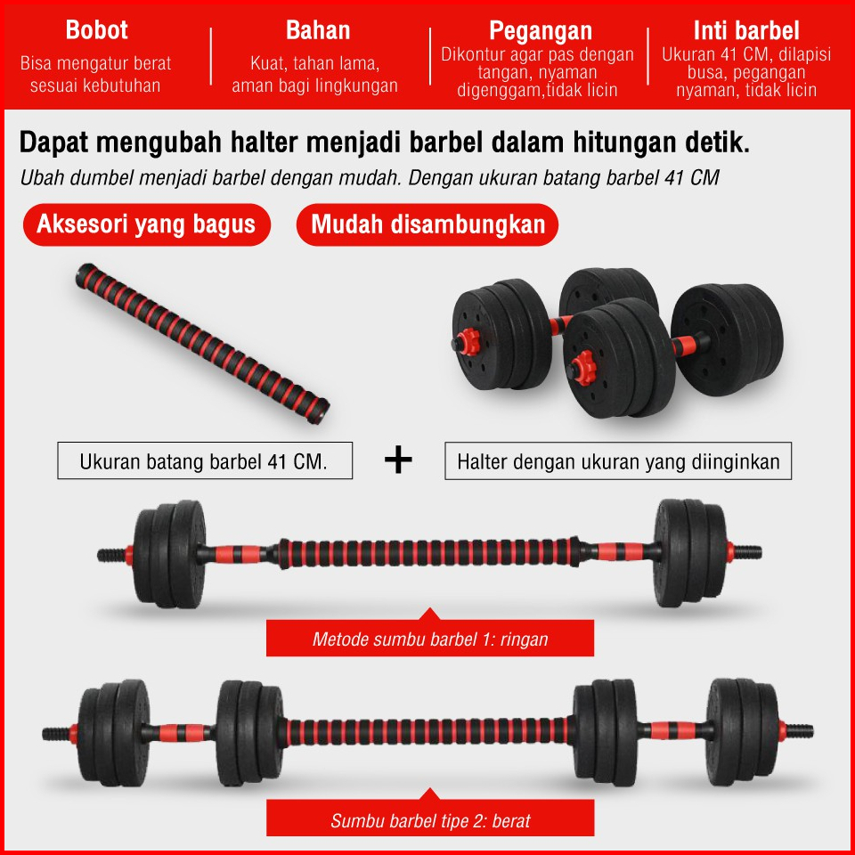 Bg Sport Set Dumbell Barbel Pvc Kettlebel 10kg 20kg 30kg 40kg Alat Gym Fitness Anti Slip
