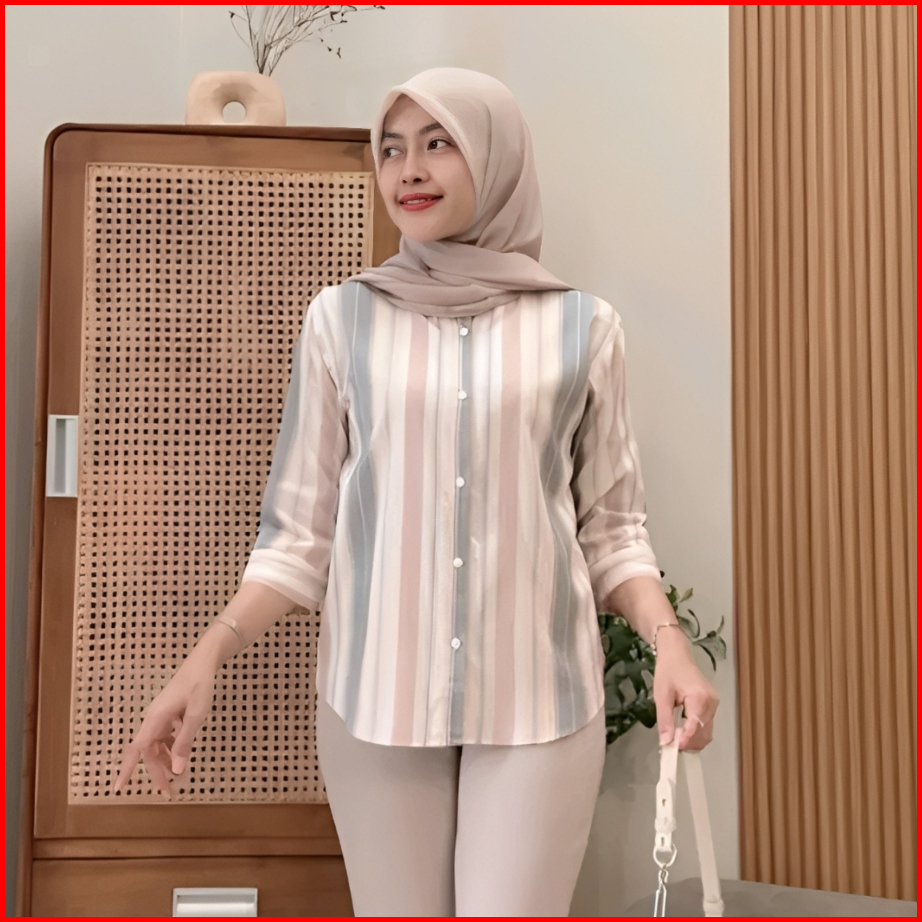 Murah Deal Kemeja Atasan Daily Top Salur Wanita Terviral Warna Soft Desain Elegan Ld 120