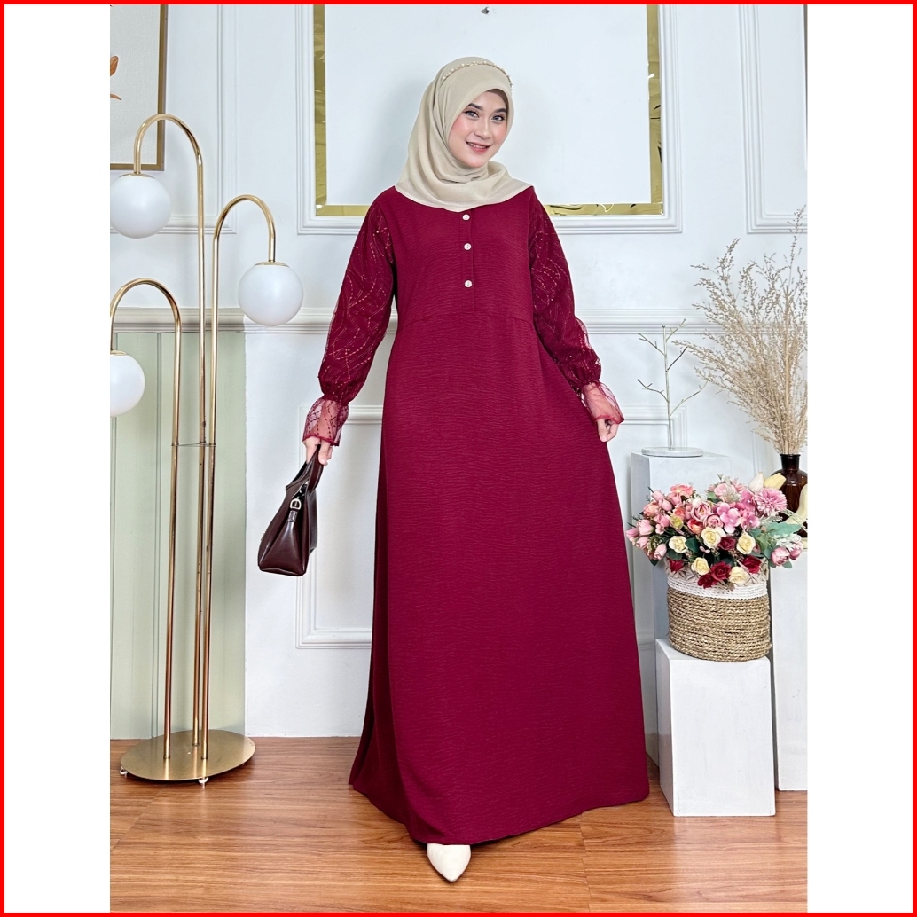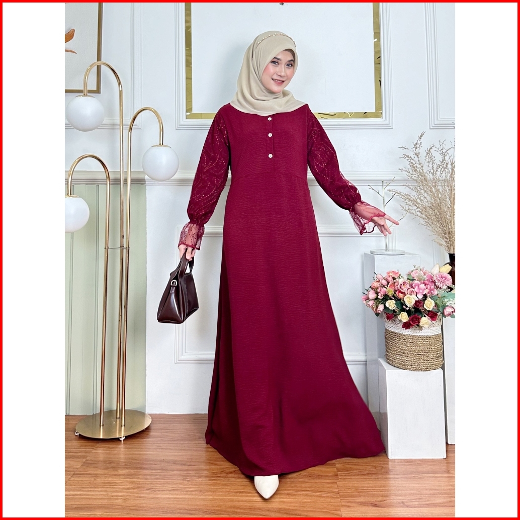 Velia Dress Gamis Pesta Polos Kombinasi Berukat Size S M L Xl Baju Kondangan Ootd Wanita Muslim 2025
