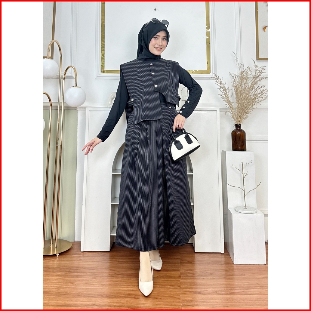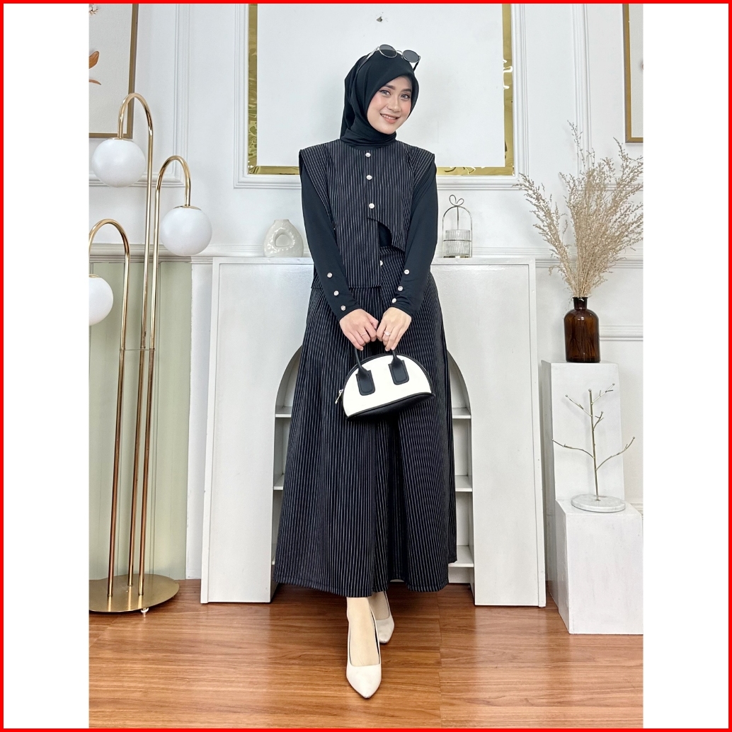 Elma One Set Baju Setelan Rok Plus Rompi Outer Manset Fashion Muslim Wanita Size S-m L-xl Ootd Daily