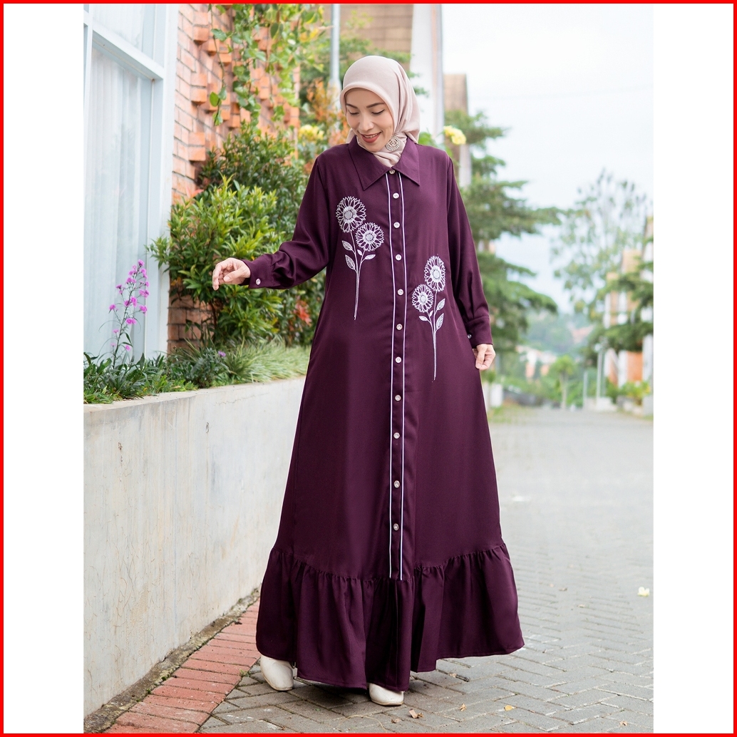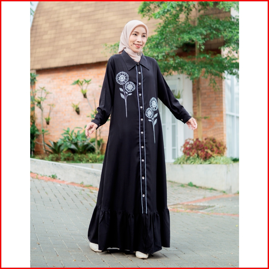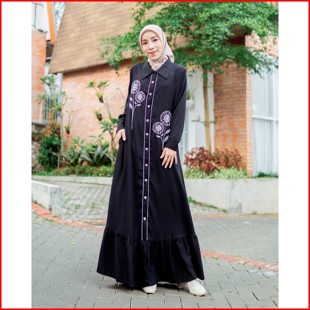 Celia Dress Baju Gamis Daily Wanita Muslim Ootd Polos Motif Bordir Simple Size S-m L-xl 3l-xxl Jumbo