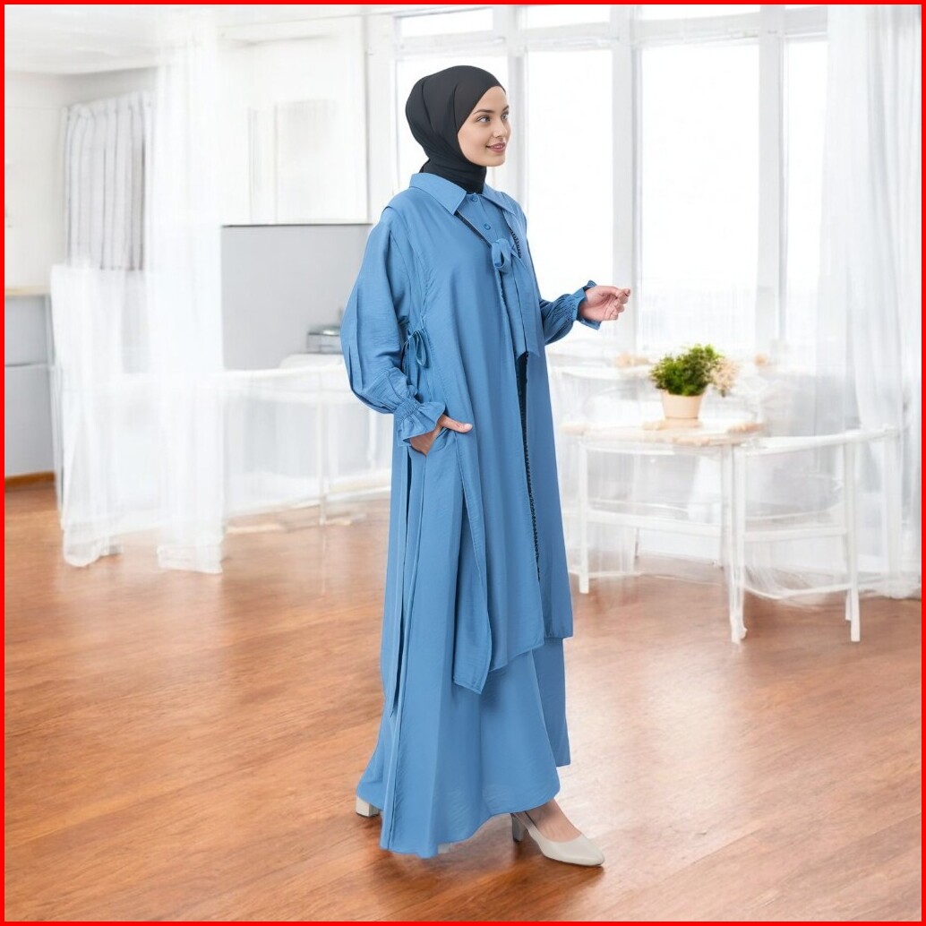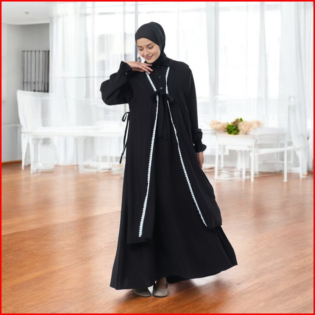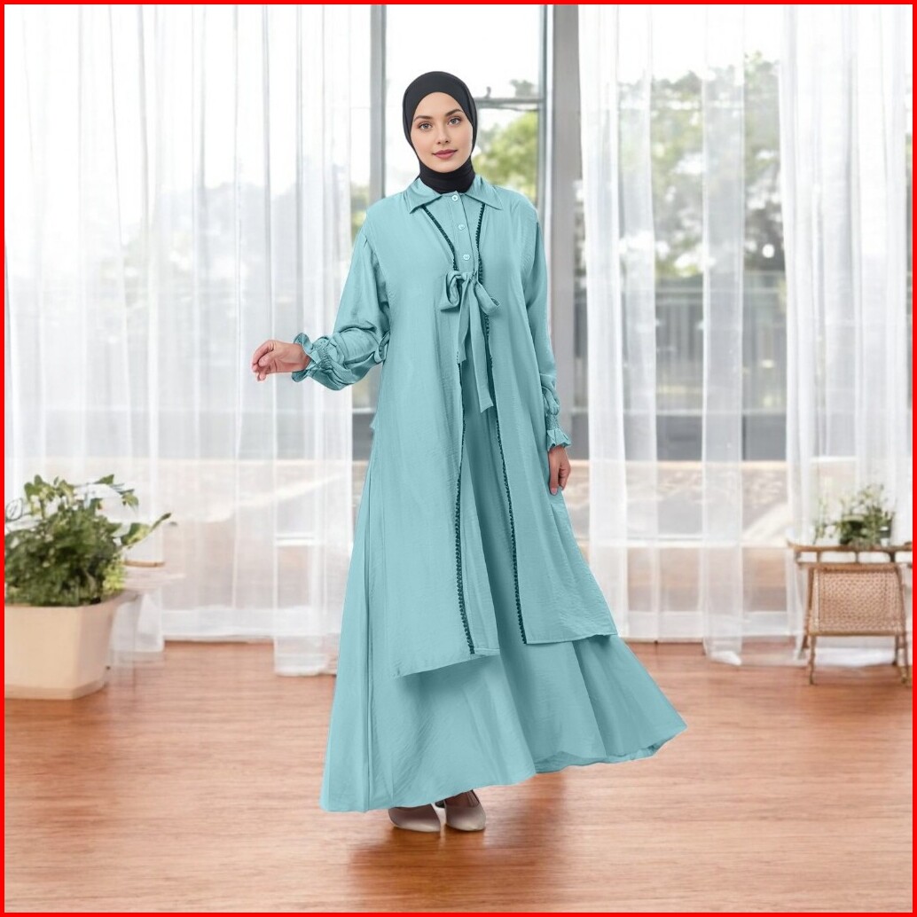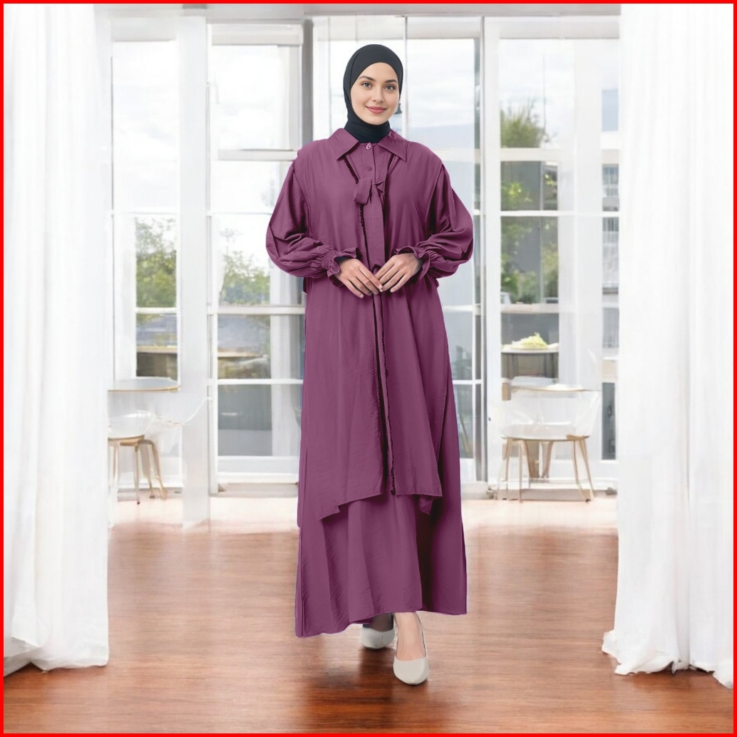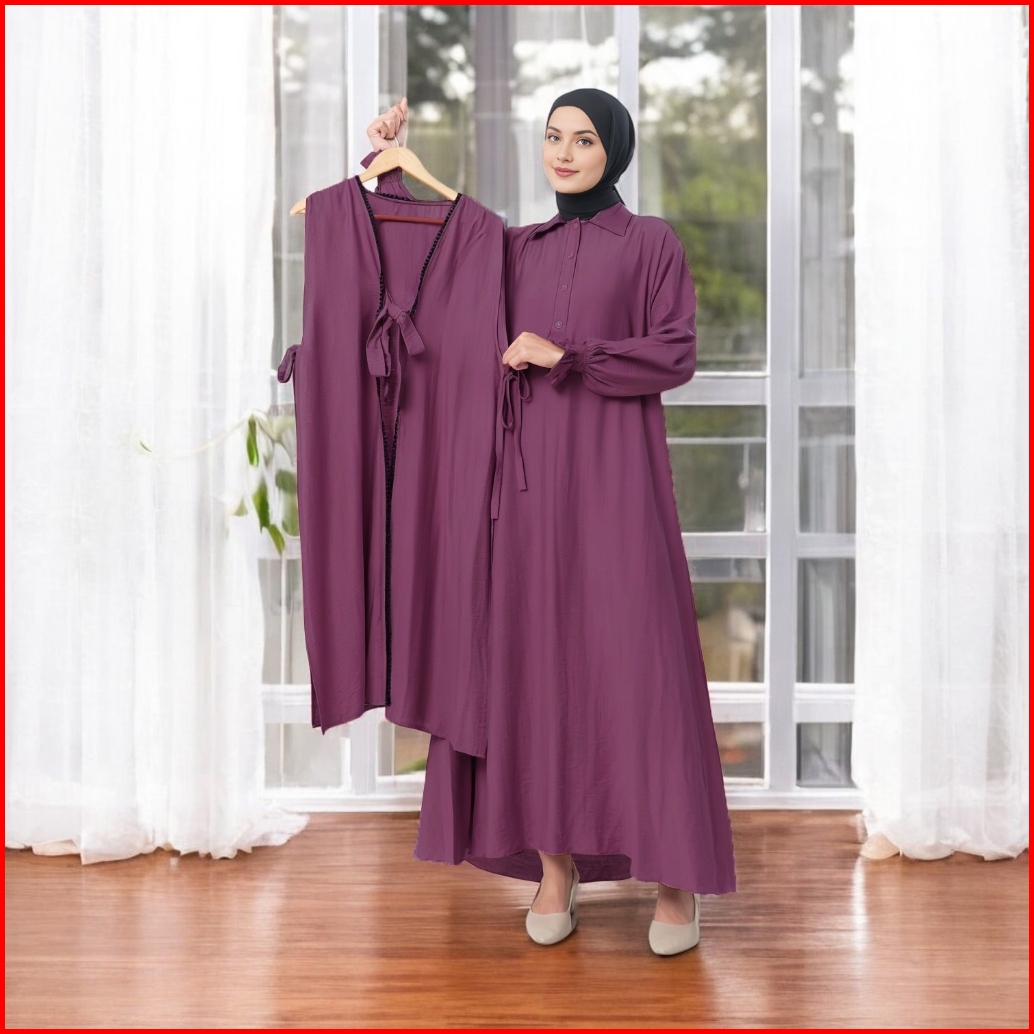 Amaliyya Set Baju Gamis Daily 2025 Setelan Dress Muslim Wanita Plus Rompi Outer Variasi Renda Depan