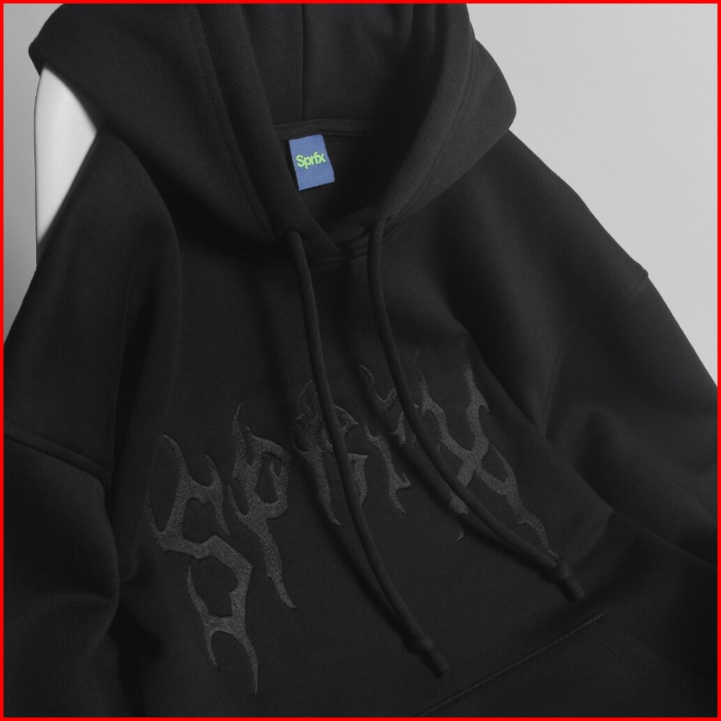 Sprfx Hoodie Boxy Oversize Baker All Black Cotton Fleece