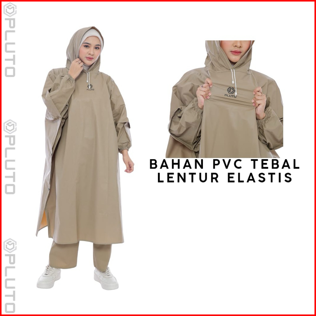 Jas Hujan Raincoat Anti Rembes Ponco Jumbo Setelan Pria Wanita Dewasa Pvc Karet Original Pluto