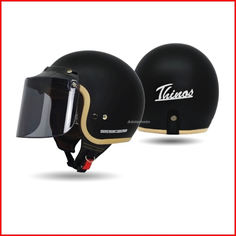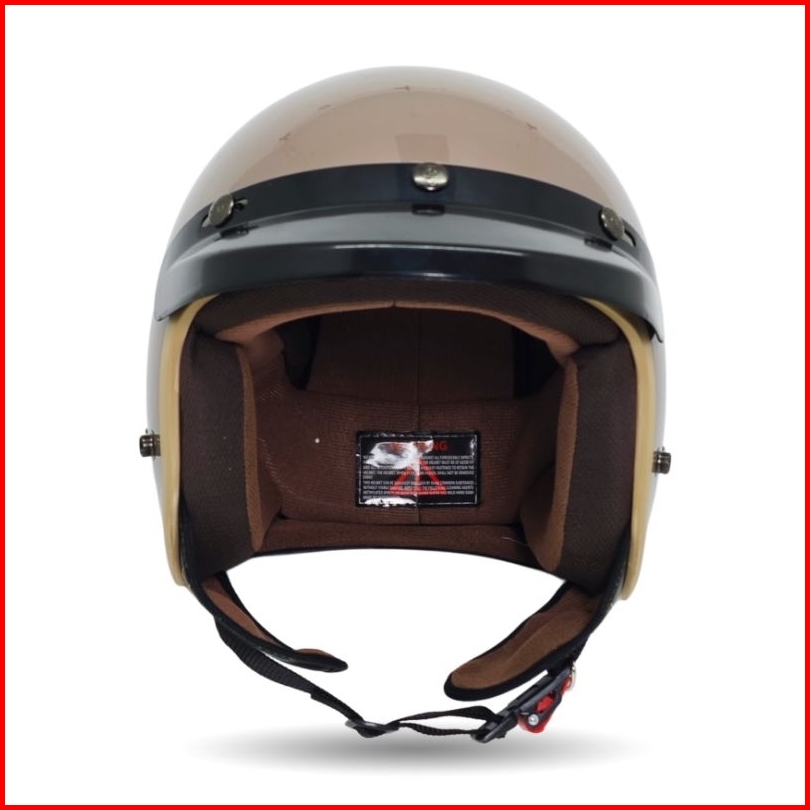 Helm Bogo Dewasa Retro Thinos New Reborn List Coklat Full Leher Sni Flat Visor - Motorcycle