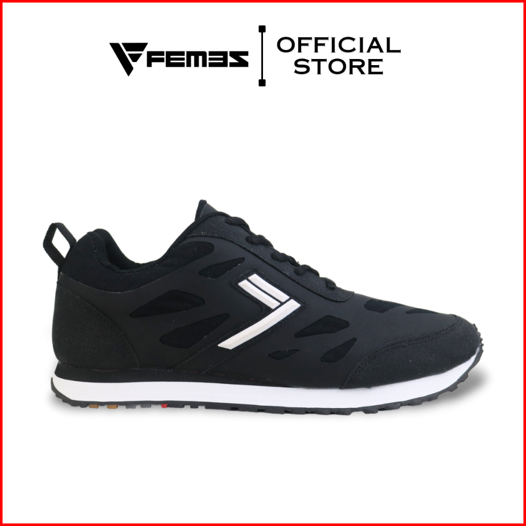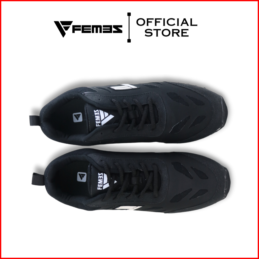 Femez Lite Berlin Sepatu Sneakers Pria Bigsize 39-48 Hitam Putih Hitam Polos Casual Joging Sekolah