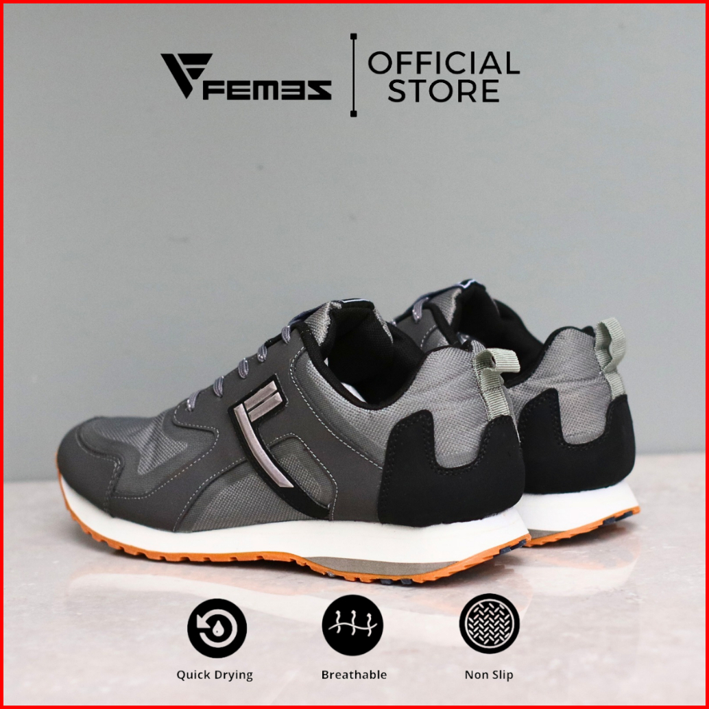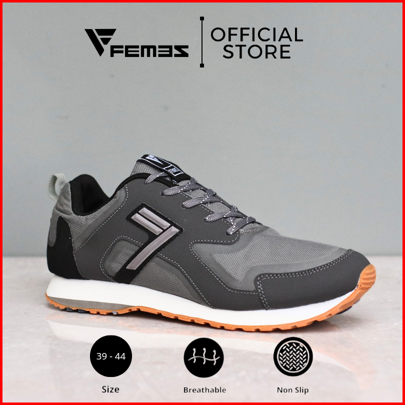 Femez Lite Zurich Sepatu Sneakers Pria 39-44 Abu Hitam Grey Black Bigsize Sport Casual Joging