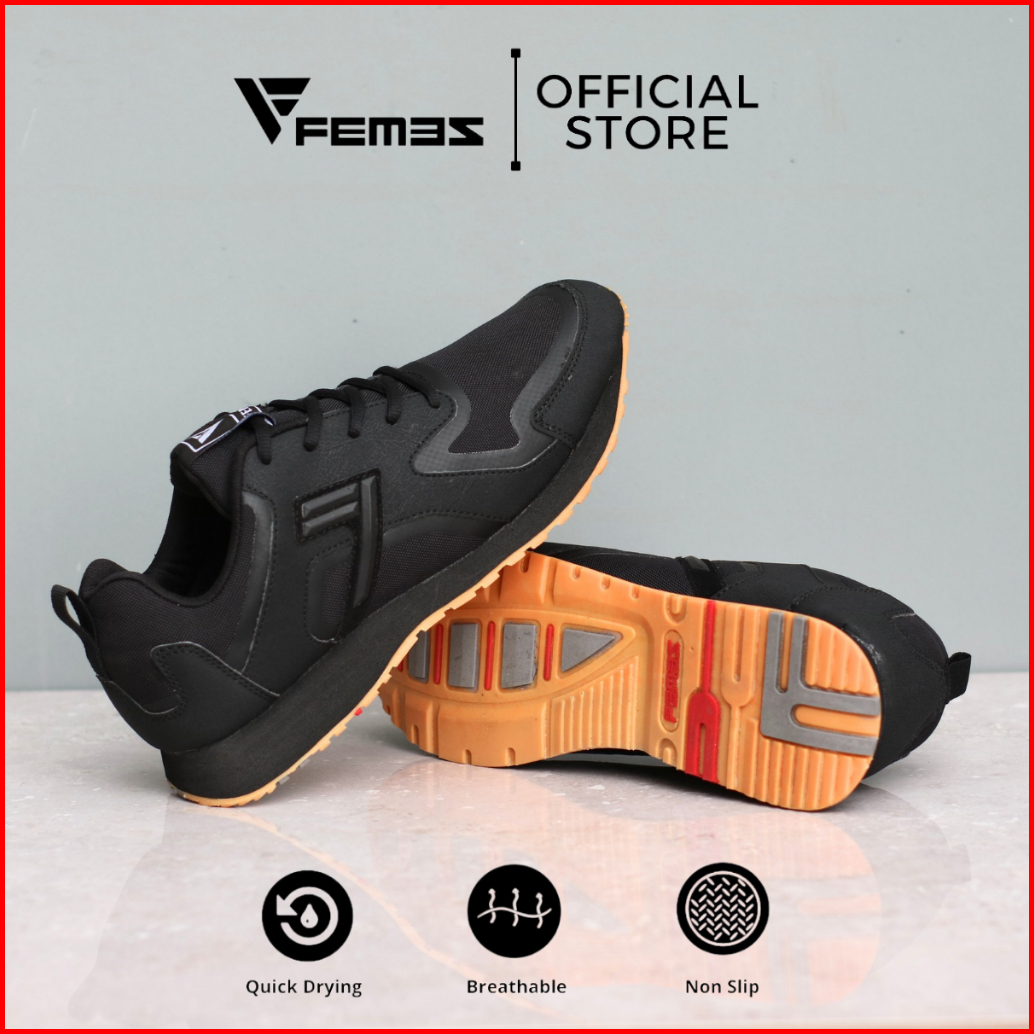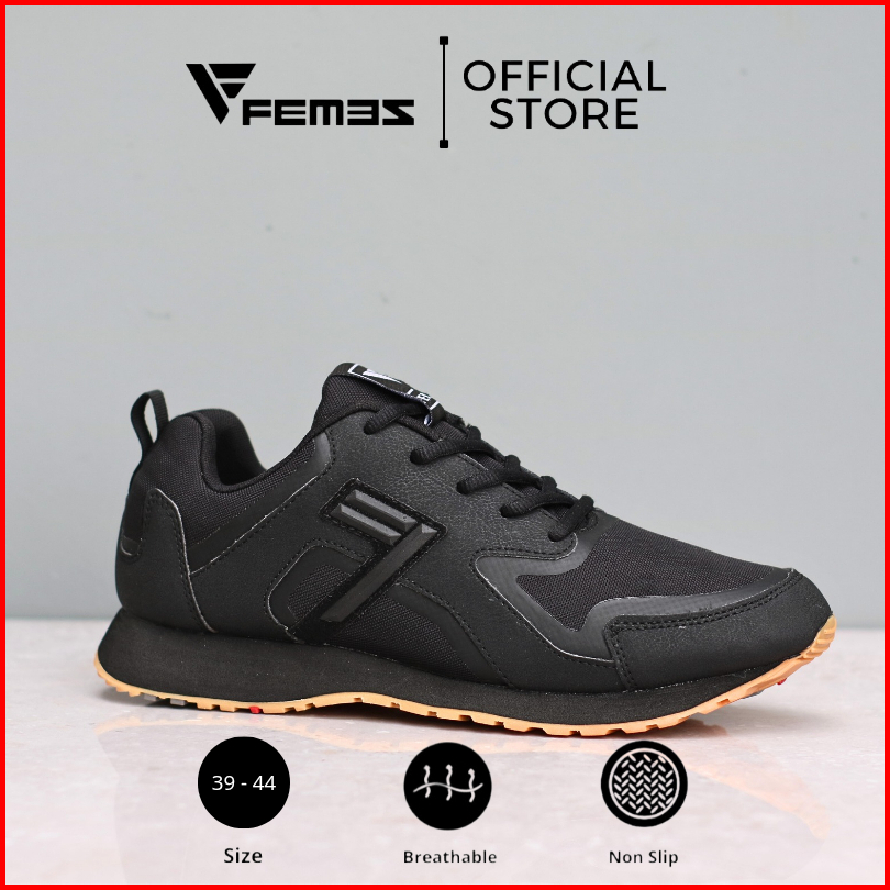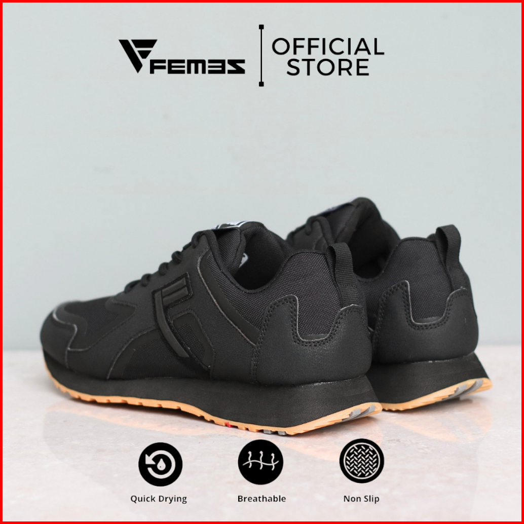 Femez Lite Zurich Sepatu Sneakers Casual 39-44 Full Black Hitam Polos Bigsize Sport Joging
