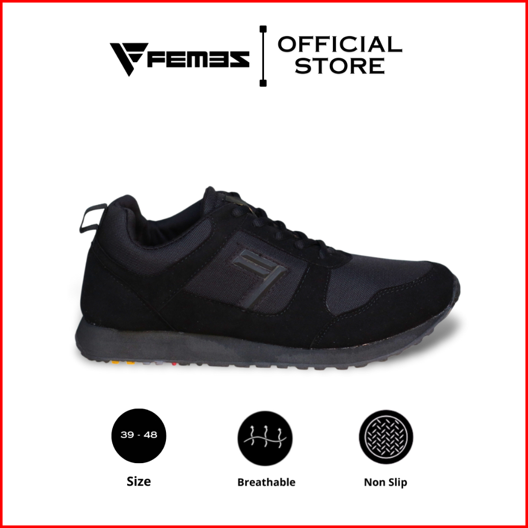 Femez Lite Como Sepatu Sneakers Pria 39-48 Full Hitam Black Hitam Polos Bigsize Sport Casual
