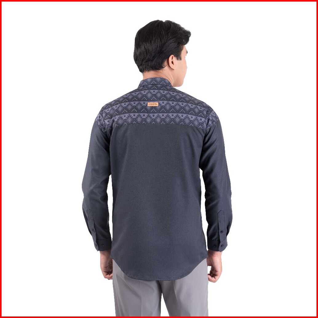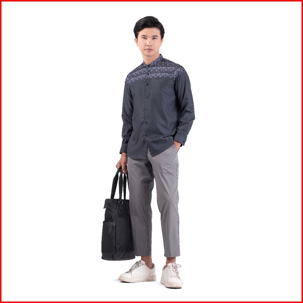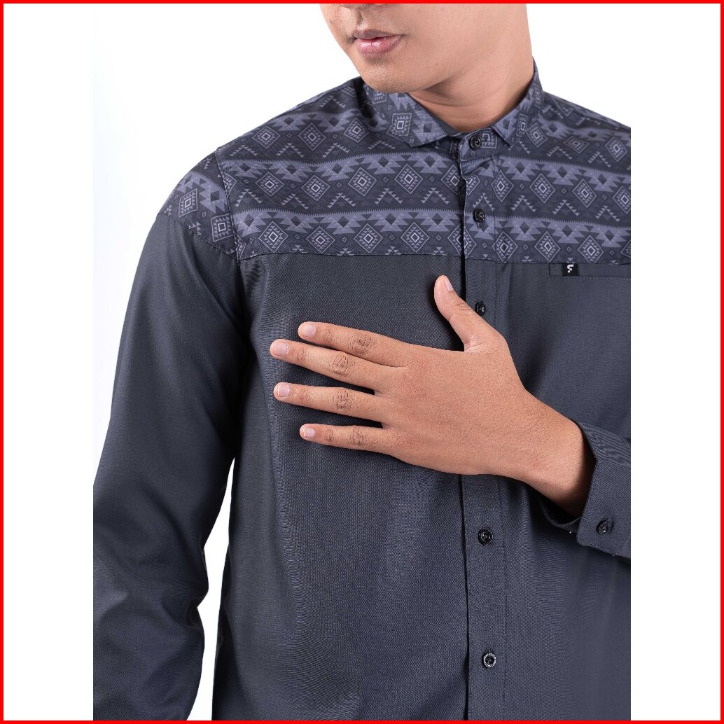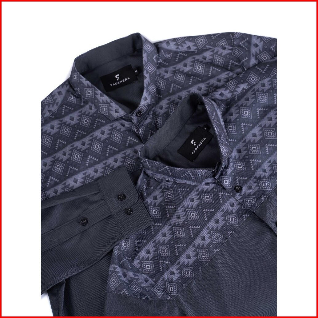 Fadkhera Shafwan Dark Grey Baju Koko Pria Muslim Modern Kemko Lengan Panjang