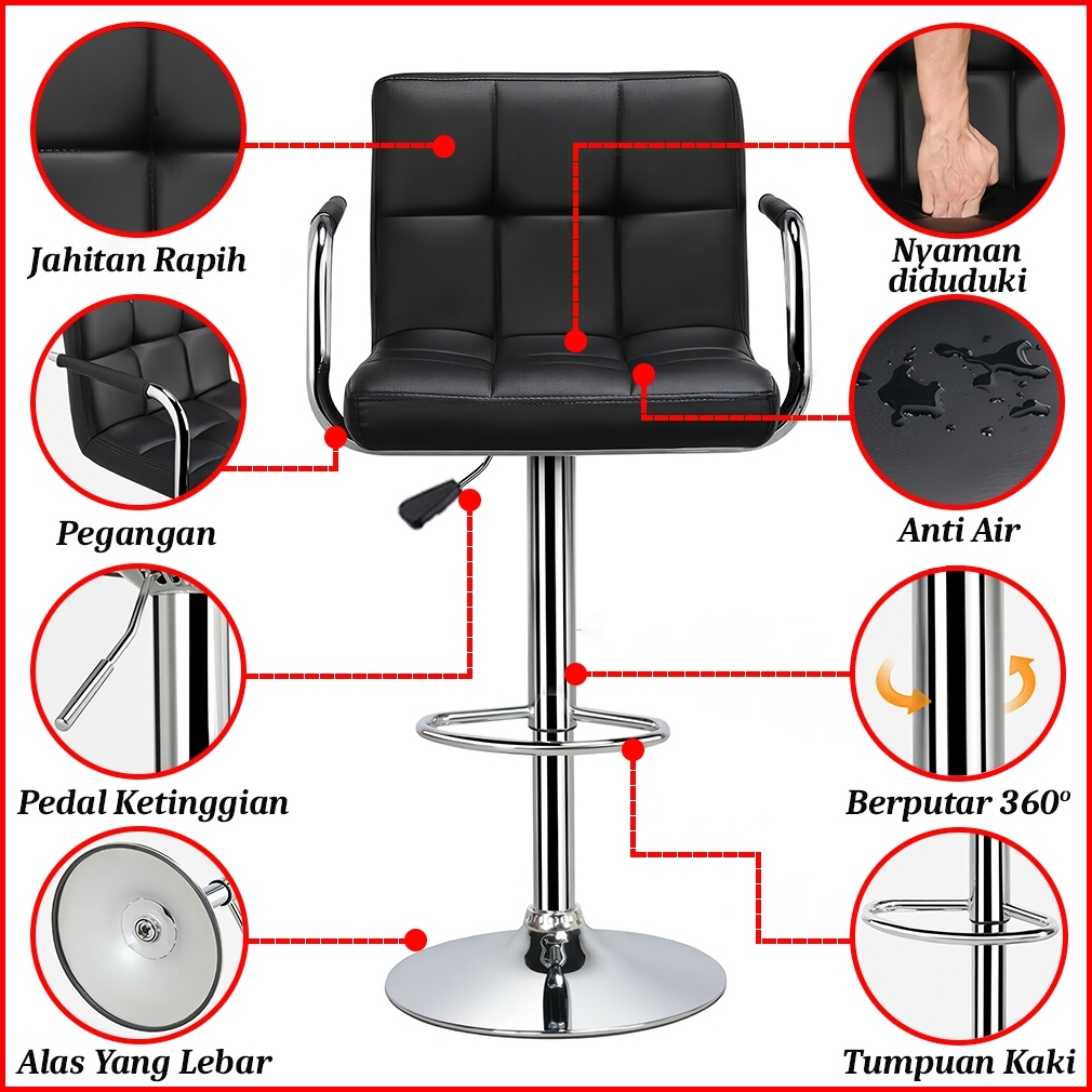 Aihome Living Kursibar Hidrolik Modern Kursi Cafe Kantor Barber Shop Tinggi Elegan Nyaman Minimalis