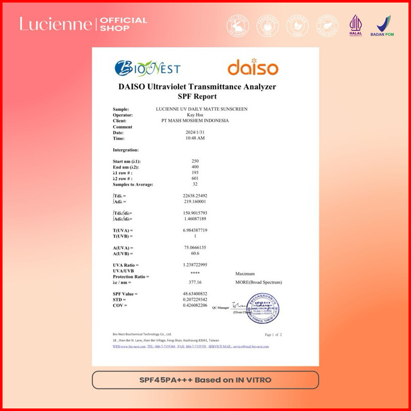 Lucienne Uv Daily Matte Sunscreen Spf45 Pa Isi 30 Ml Hybrid Sunscreen