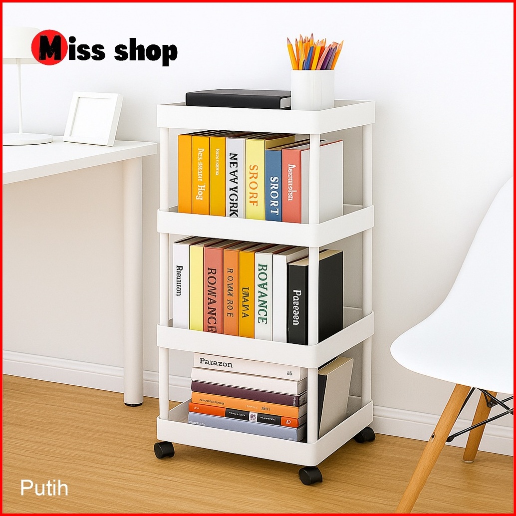 Ms Rak 4 Susun Dengan Roda Rak Buku Sebaguna Rak Troli Multifungsi