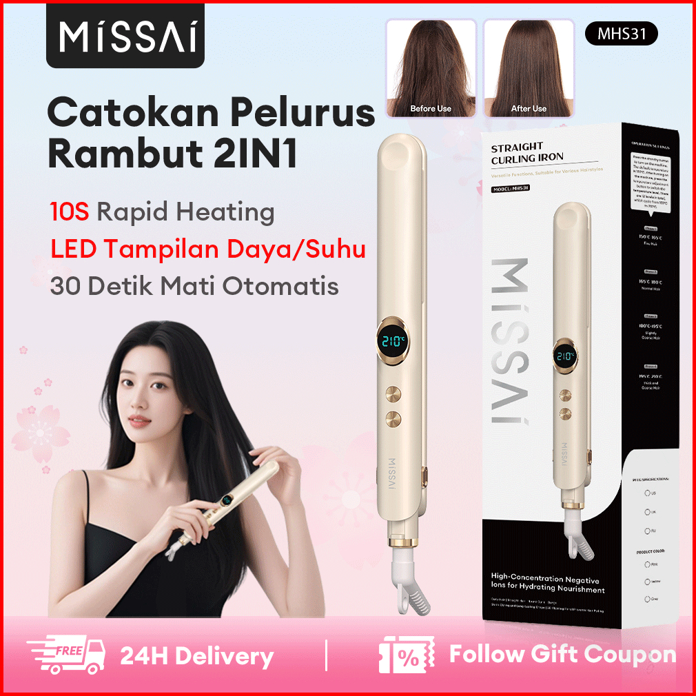 Codmissai Catokan Rambut Wanita Catokan Lurus Dan Curly 2 In 1 Tampilan Digital Led Catokan Rambut Panas Cepat 10 Detik