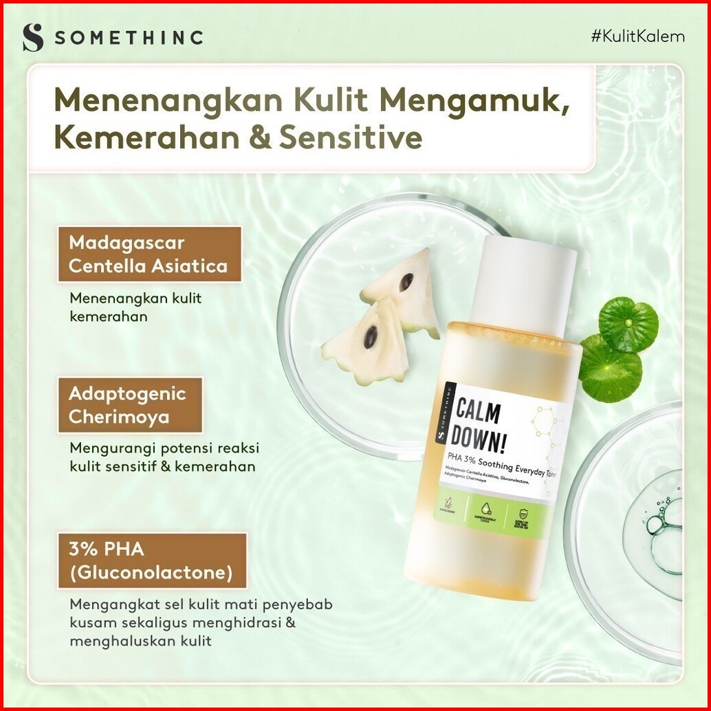 Somethinc Calm Down Pha 3 Soothing Everyday Toner - Toner Untuk Kulit Sensitif Kemerahan Kulit Normal. Meredakan Kemerah