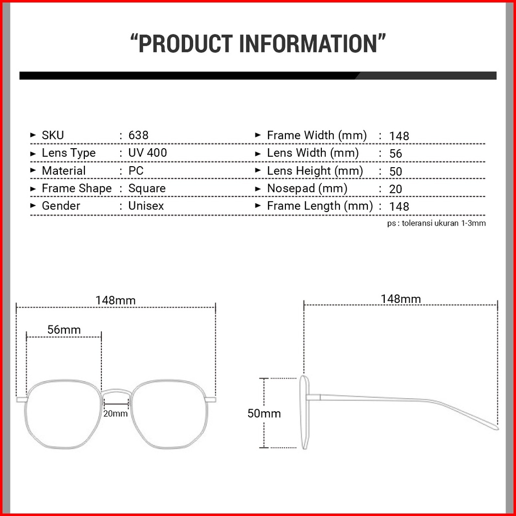 Robins - Kacamata Hitam Kotak Modern Sunglasses Model Pc Anti Uv 638