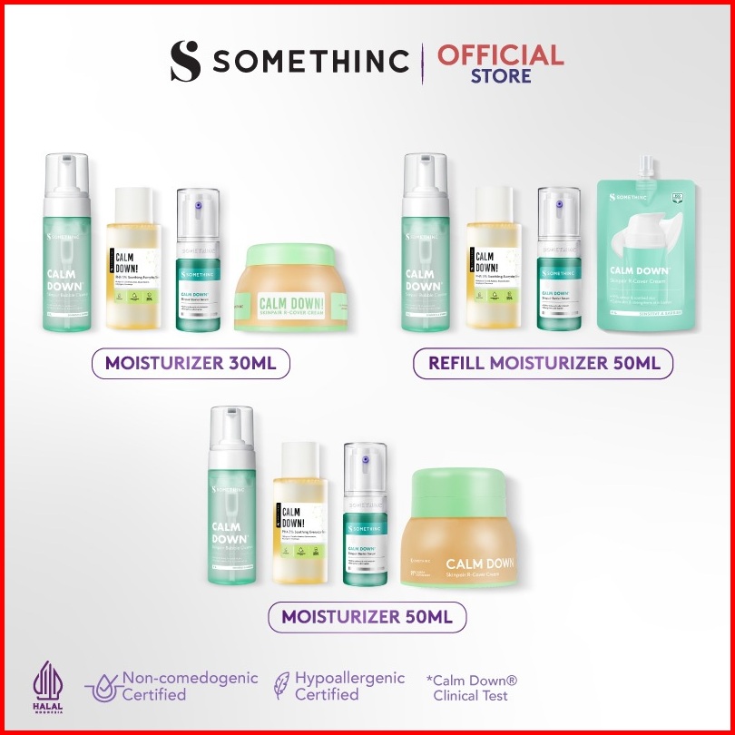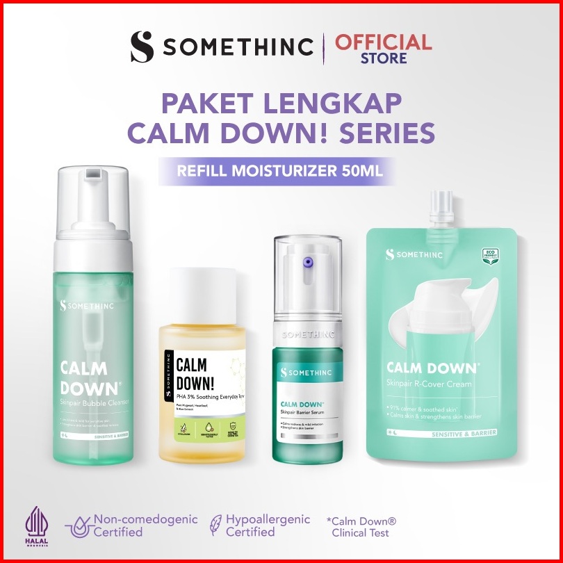Somethinc 4 Pcs Paket Lengkap Calm Down Series Calm Down Bubble Cleanser Calm Down Toner Calm Down Serum Calm Down Moist