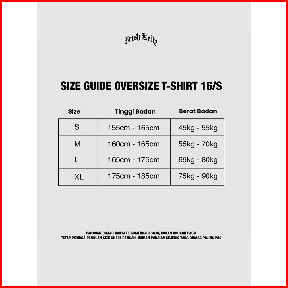 Irish Kelly T-shirt Oversize Heavyweight 16s Spade King White 240 - 260 Gsm Kaos Putih
