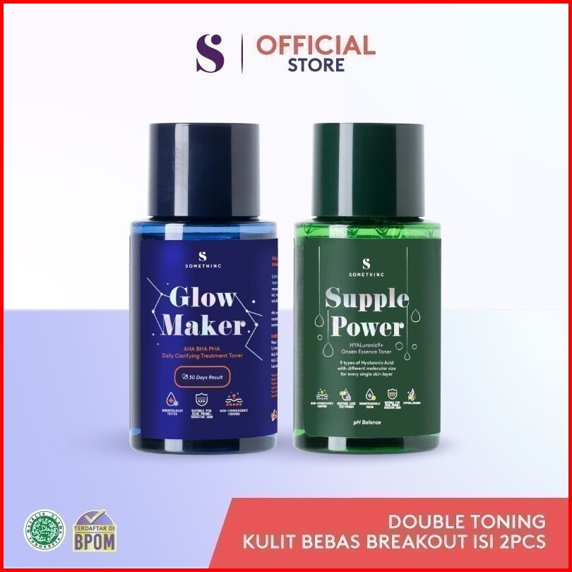 Bundle Hemat Somethinc Trial Kit - Double Toning Kulit Bebas Breakout Kit Glow Maker Aha Bha Pha Clarifying Treatment To
