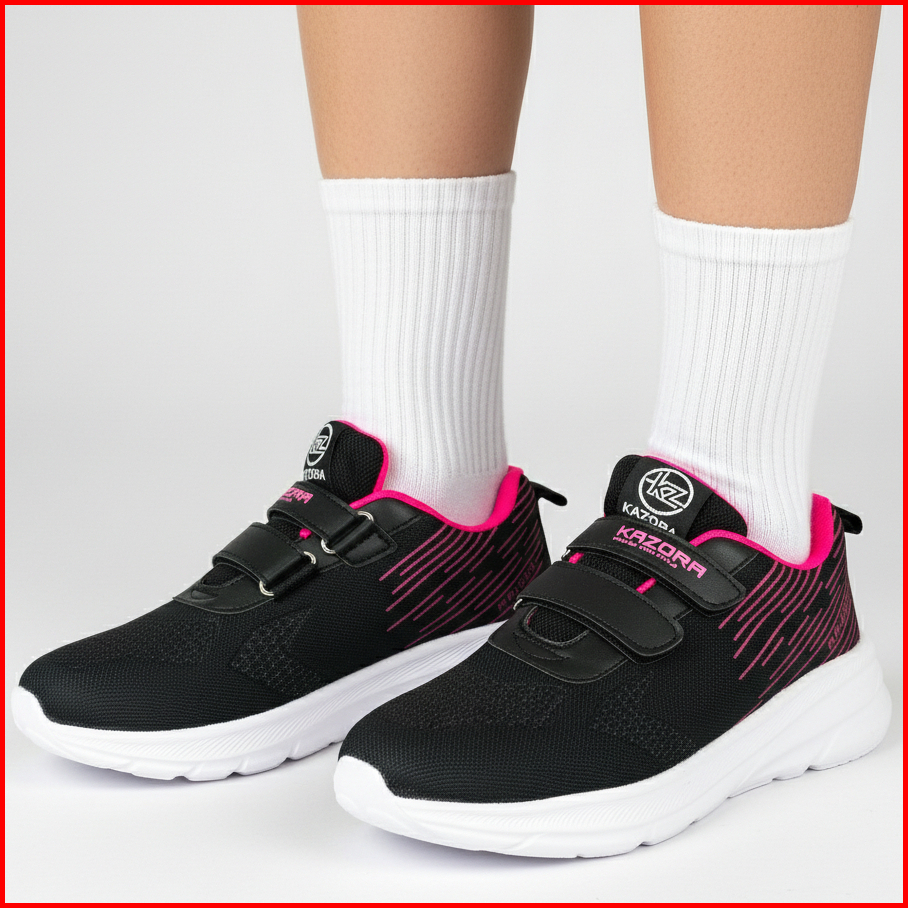 Kazora Kidoz Sepatu Sekolah Anak Dan Dewasa Laki Laki Dan Perempuan Perekat Velkro Sepatu Hitam Pink Full Hitam Cewek Co