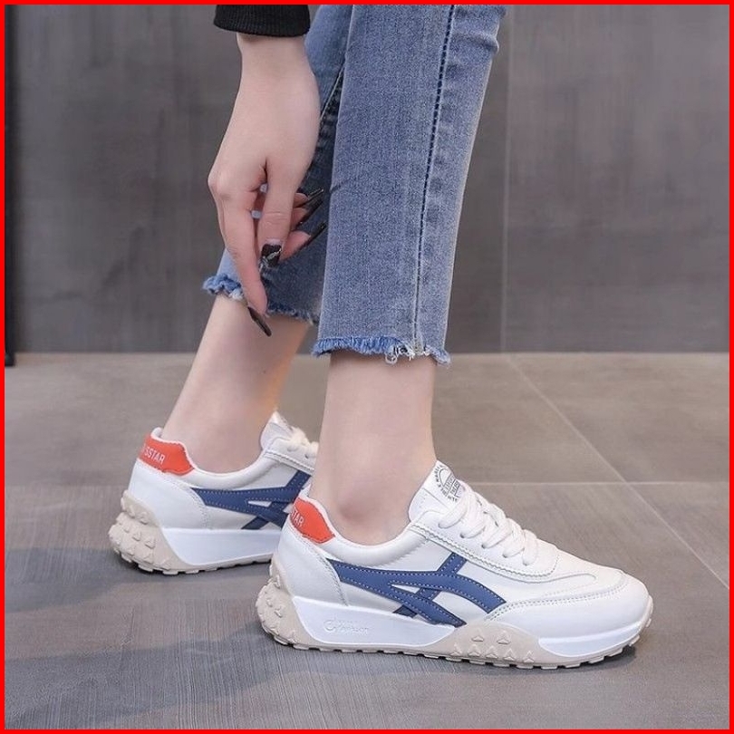 Sepatu Sneakers Wanita Kekinian Anti Slip Keren Bahan Pu Korean Style