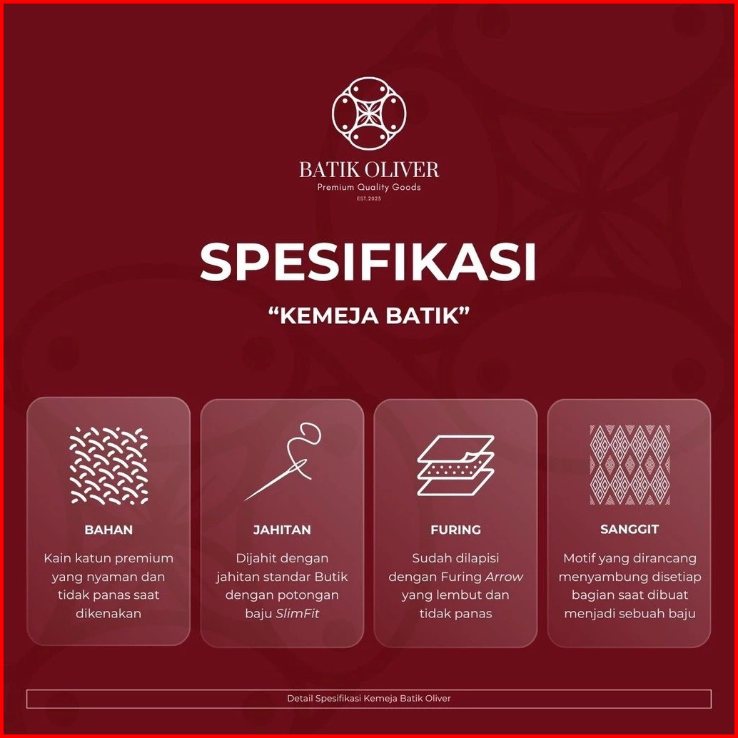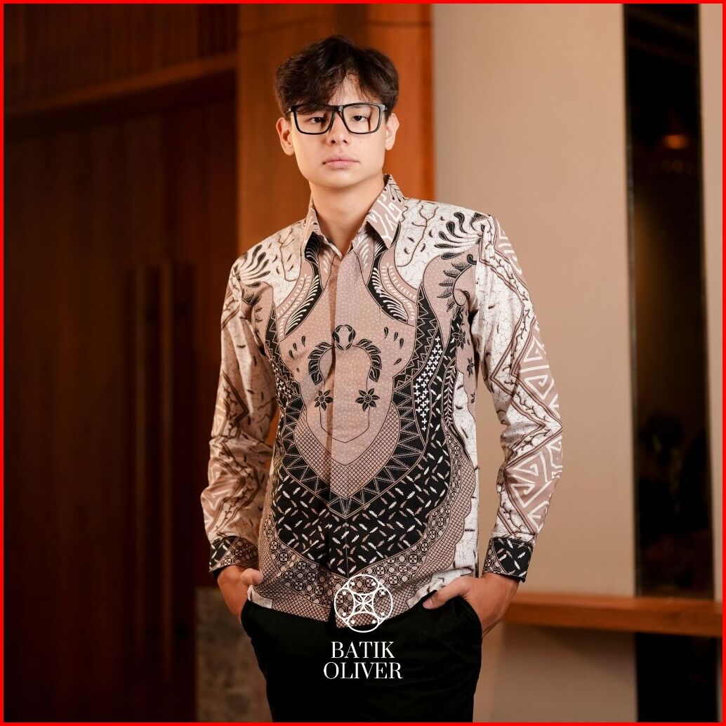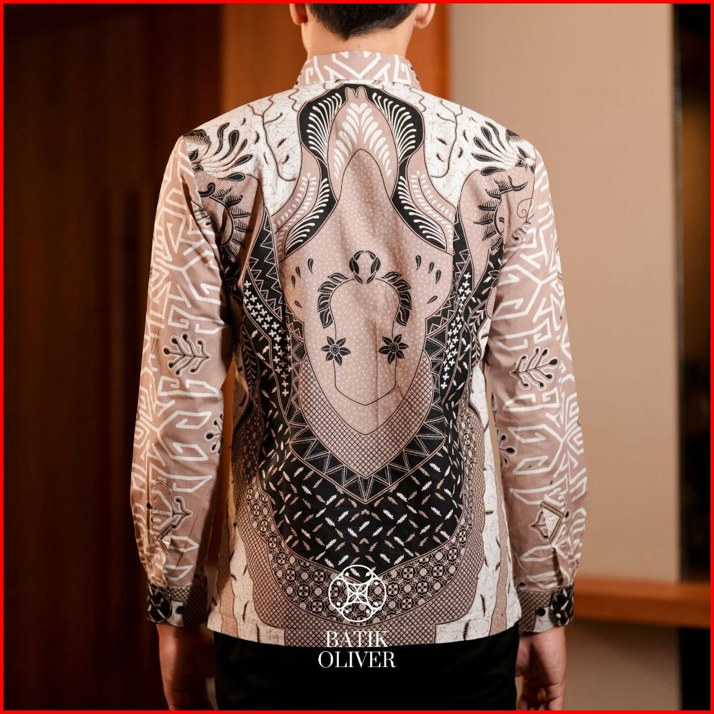 Kemeja Batik Oliver Motif Mahadri - Kemeja Batik Pria Slimfit Lengan Panjang Lapis Furing Premium