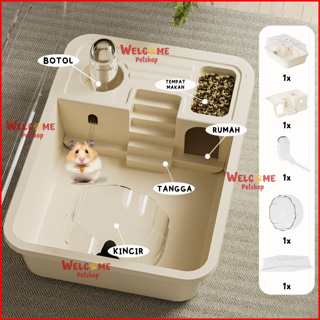 Kandang N39 Hamster Set Lengkap Rumah Botol Kincir Plastik Lucu Travel Cage Kecil