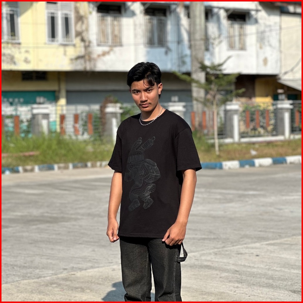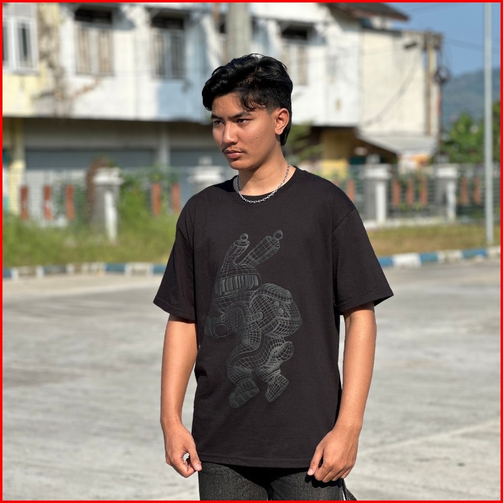 Ngab Kaos Baju Distro Geometric Roborabbit Hitam Nb163 Pria Wanita Cotton Combed 24s