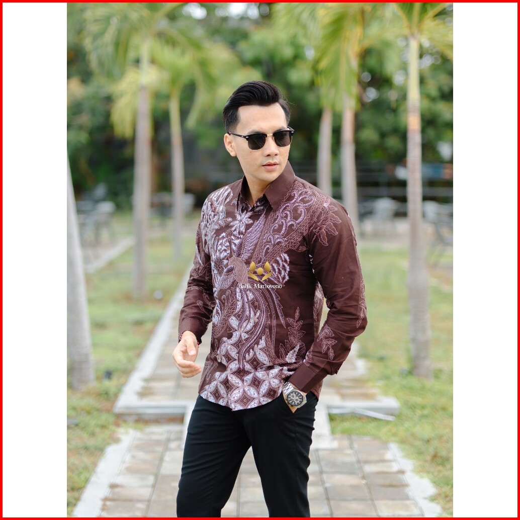Peksi Coklat Mahogany Baju Batik Pria Lengan Panjang Slimfit Modern