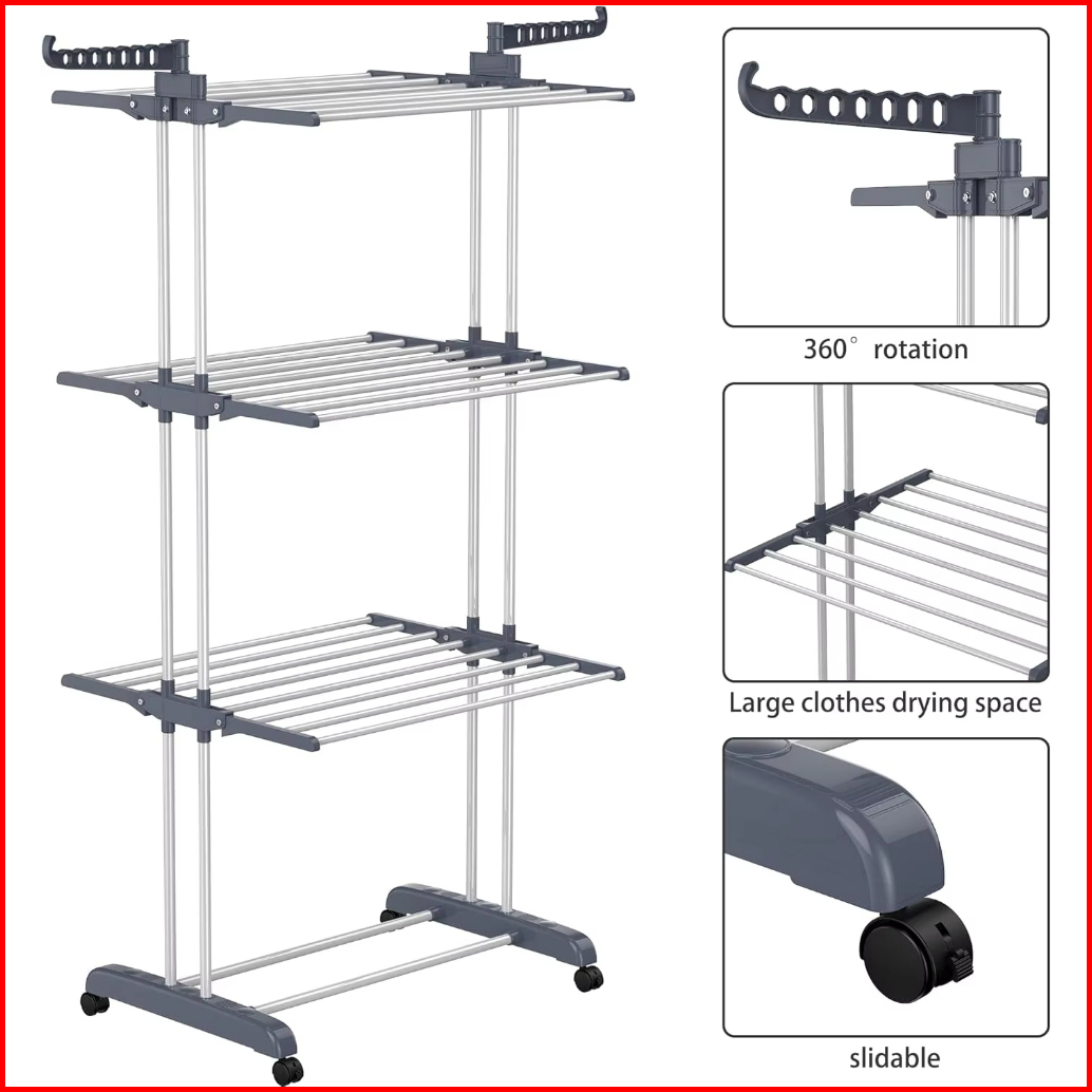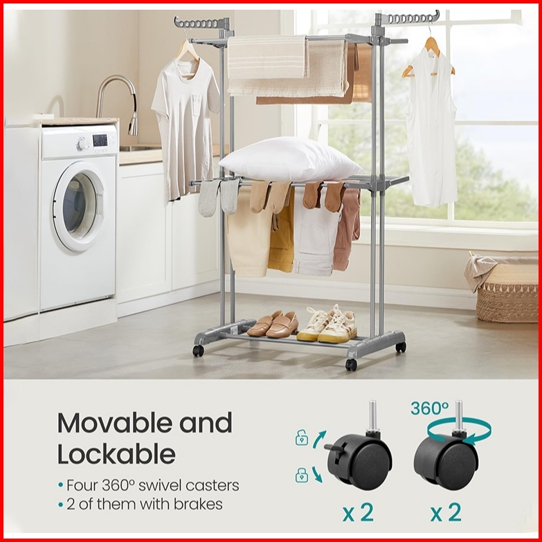 T-sea Rak Jemuran Lipat Baju Handuk Sepatu Slot 4susun Dgn Roda Gantungan Pakaian