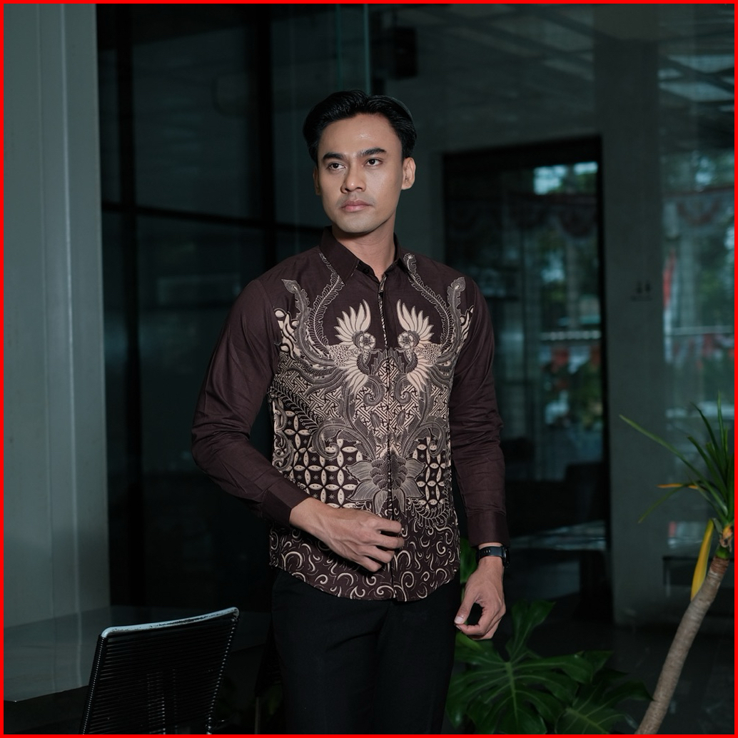 Batik Ningratan Motif Prabuwira Coklat Kemeja Batik Pria Premium Lengan Panjang Slimfit Full Furing Keren Sragam Kantora