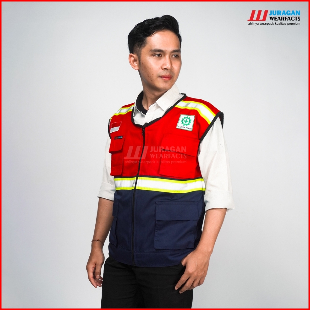 Juragan Wearfacts - Rompi Hse Warna Merah Kombinasi Biru Navy