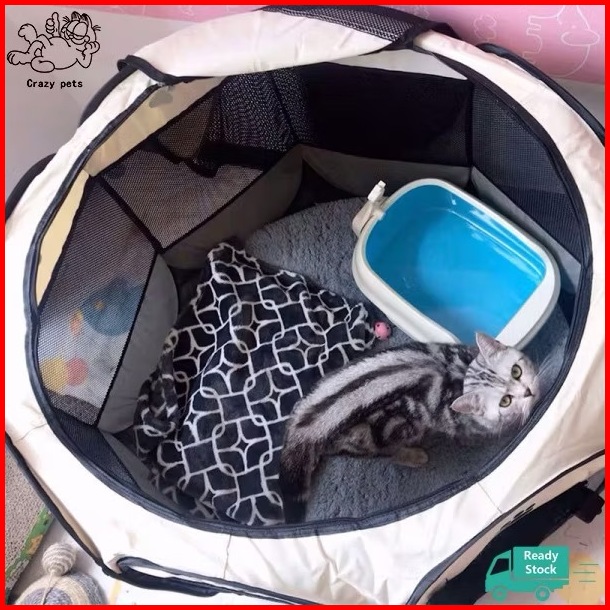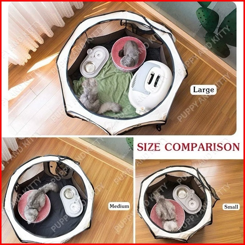Kandang Kucing Pagar Tenda Lipat Portabel Dengan 8 Panel Untuk Kucing Anjing Lipat Hewan Bahan Kain