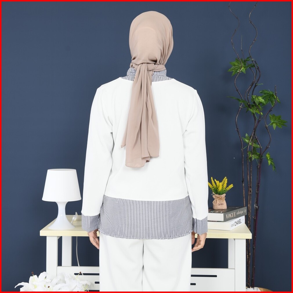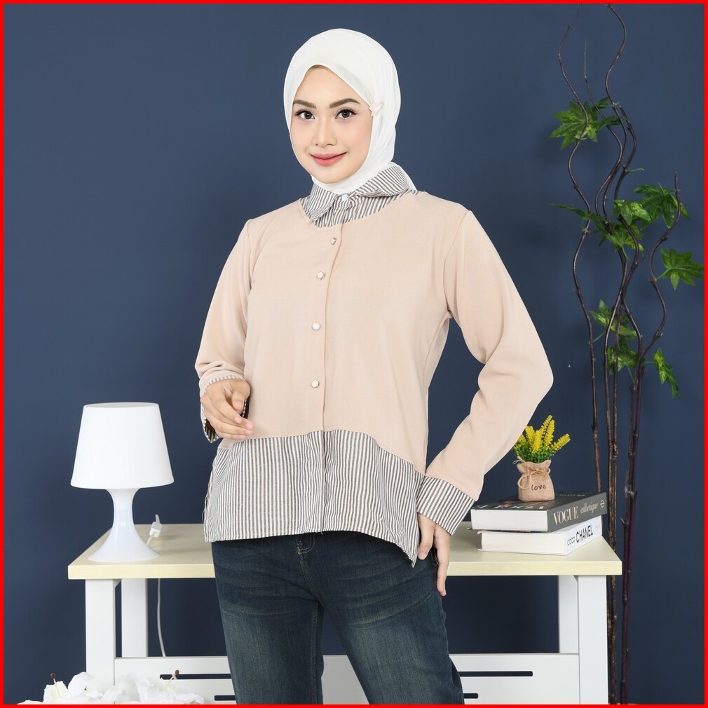 Mybamus X Listy Septia Ity Kemeja Layer Cardi Kombinasi Stripe Layer Shirt Atasan Wanita 2 In 1